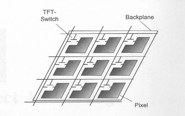 Κατά τη σάρωση των pixels της οθόνης, ειδικές μήτρες ελέγχουν την ηλεκτρική τους αγωγιμότητα ρυθμίζοντας την ένταση του τελικού σήματος (τεχνική: thin film transistor, TFT). Κάθε pixel θα δώσει φως μόνον όταν δεχθεί σήμα ταυτόχρονα από την οριζόντια και κάθετη ‘συνιστώσα’ του
