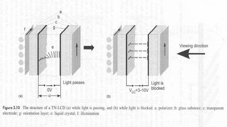 Όταν εφαρμόζεται διαφορά δυναμικού στους υγρούς κρυστάλλους, οι τελευταίοι περιστρέφουν το επίπεδο πολωμένου φωτός που πέφτει πάνω τους